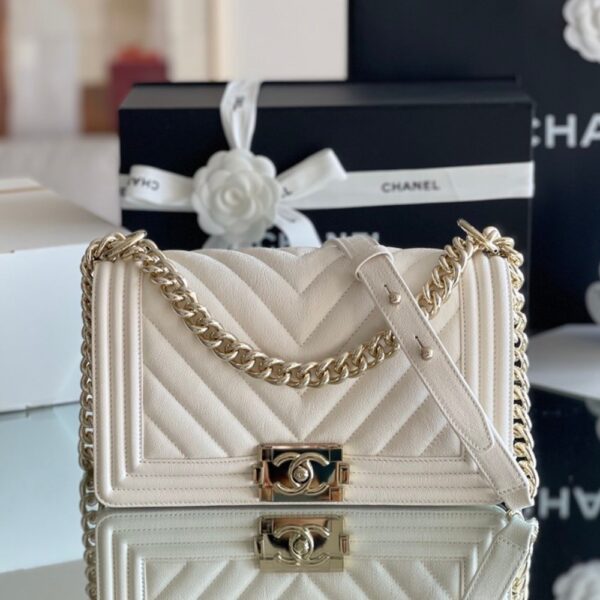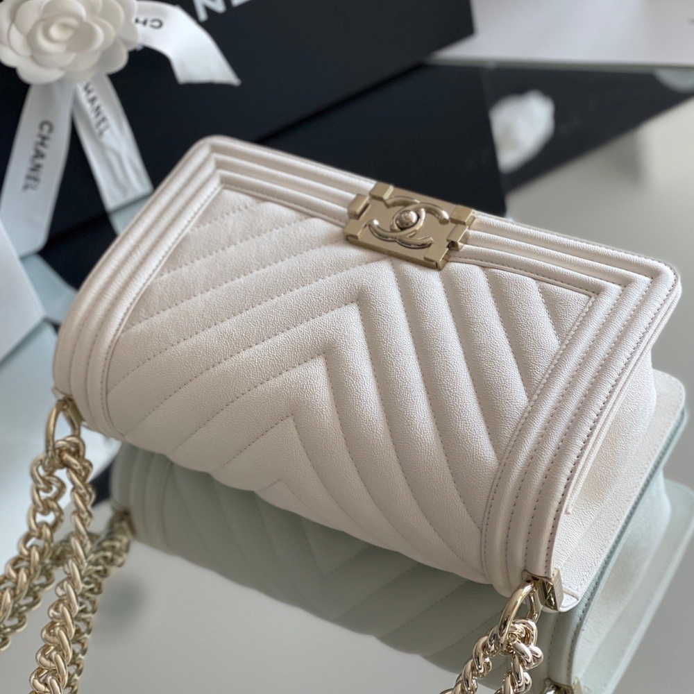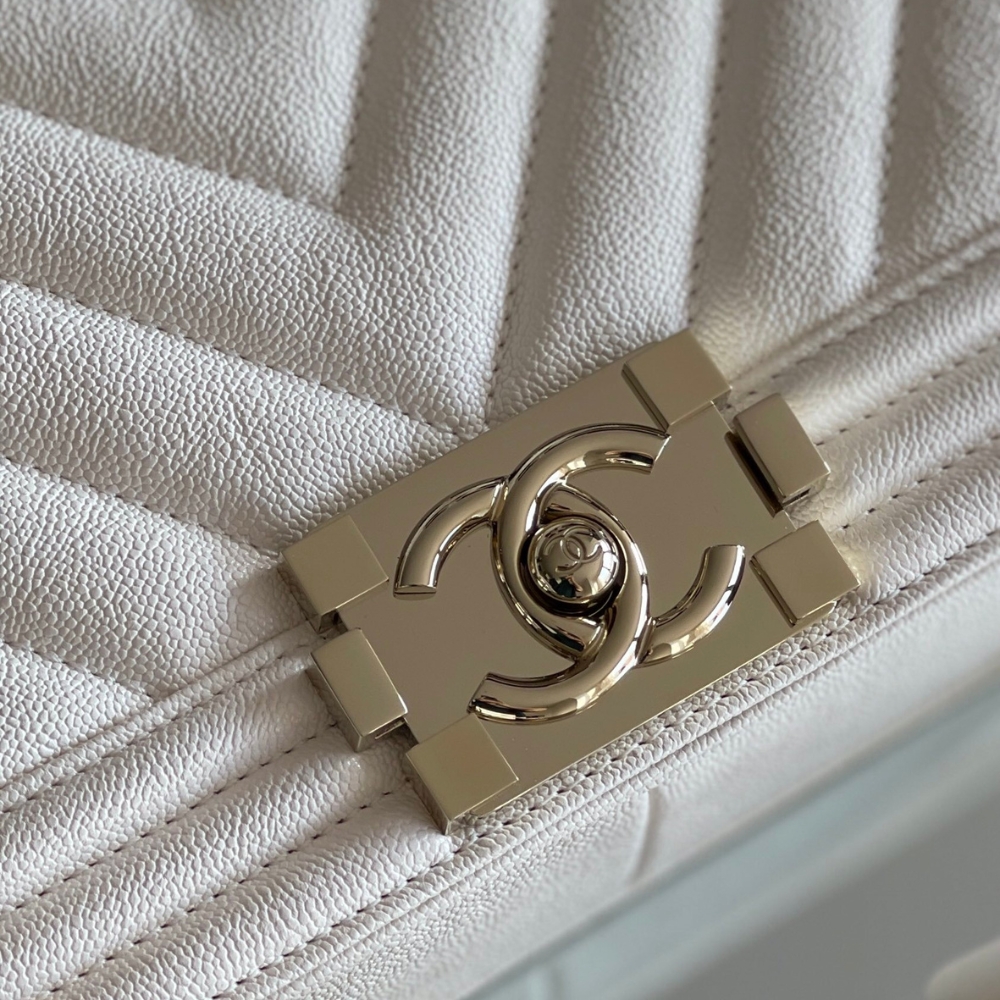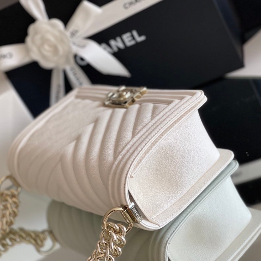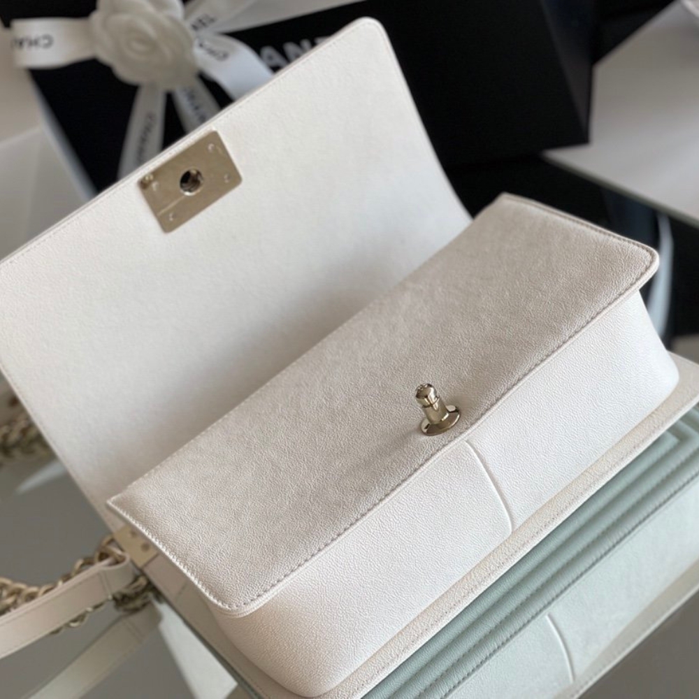 Chanel Boy Bag White Gold Hardware