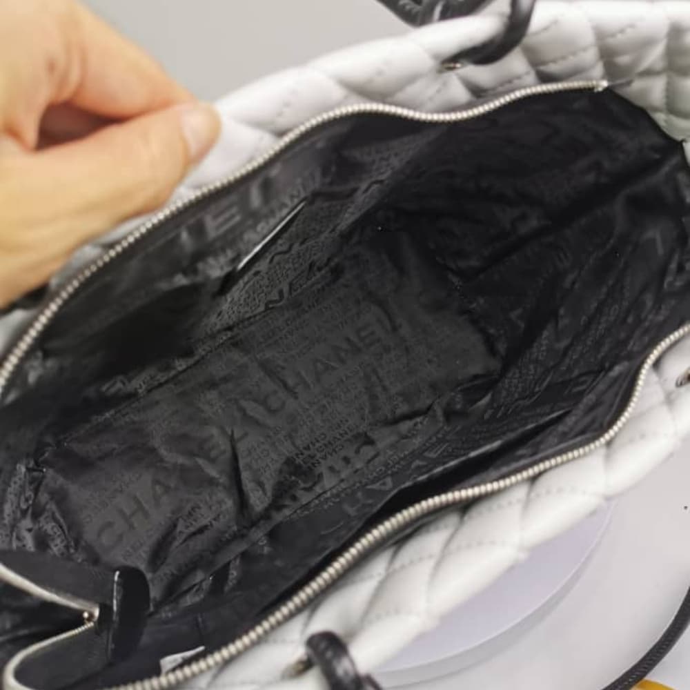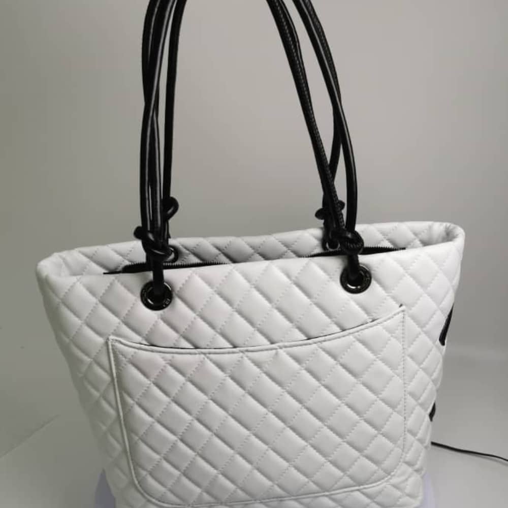 Chanel Cambon Line Large Tote Bag In White And Black