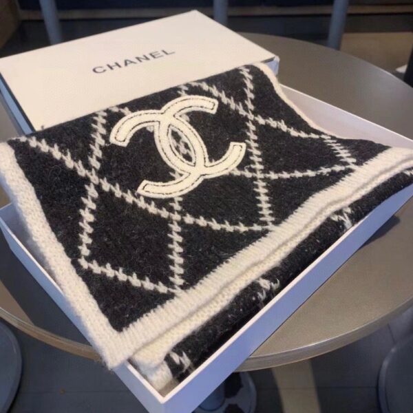 Chanel Cashmere Silk Quilted Cc Scarf Black White