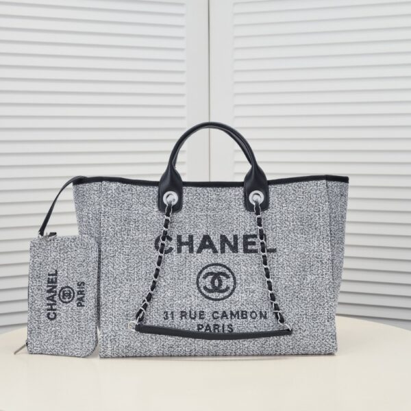 Chanel Large Deauville Tote Bag Bicolor Gray