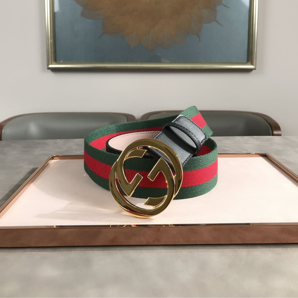 The Gucci Web Belt with G Buckle in green captures the essence of the House’s heritage with its iconic stripe design and bold golden emblem. A statement of timeless elegance and prestige, it transforms everyday styling into a symbol of refined luxury.
