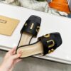 The Gucci Women’s Logo Embellished Slide Sandals in black bring iconic sophistication to everyday elegance, with bold golden accents that command attention. Their sleek silhouette and effortless comfort create a statement of modern prestige, perfect for those who embody luxury at every step.