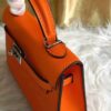 The Hermès Kelly Mini in Orange radiates bold sophistication, with its iconic silhouette brought to life in a vibrant hue that commands attention. A timeless treasure of elegance and prestige, it embodies effortless luxury for the woman who defines her own statement of style.