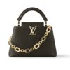 Exquisitely crafted from grained leather, the beautiful Capucines BB bag is enhanced by its unique octagonal chain link. The links are embellished with shiny enamel detailing and hand-attached to the chain. The bag can fit two large phones, a long wallet and other essentials.