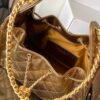 The bag stands out with its radiant metallic gold finish, diamond quilting, and drawstring closure detailed with the iconic CC logo. The chunky gold chain adds a bold, luxurious touch, making it perfect for both statement evening looks and chic day styling. A glamorous twist on Chanel’s timeless elegance.