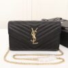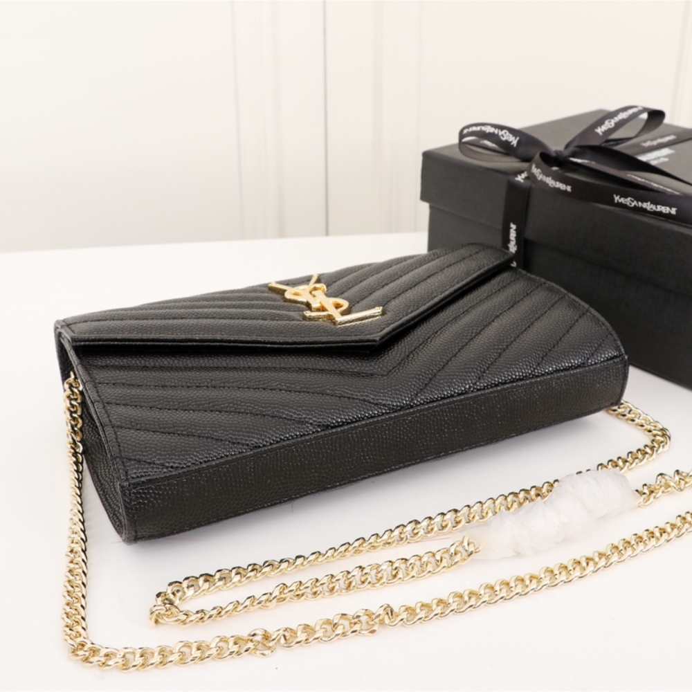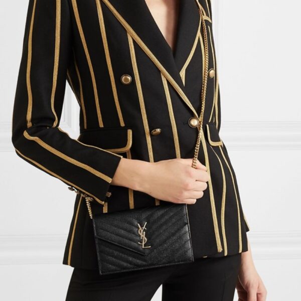 Saint Laurent Cassandre Matelassé Chain Wallet In Grain De Poudre Embossed Black Gold