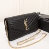 This SAINT LAURENT wallet on chain makes an elegant addition to the accessories selection. It features a front-flap closure with multiple pockets and strap to carry over the shoulder. The classic design is given a distinctive look with the interlocking YSL accent and luxe matelassé stitching.